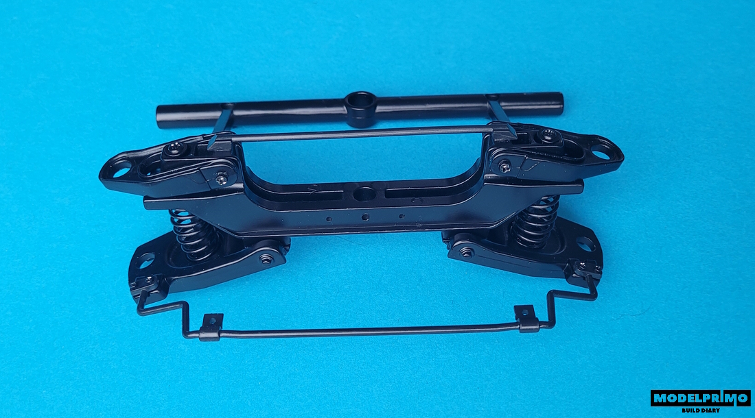 Continue the work on the suspension, adding the front sway bar and the top bar and small brackets for fixing the brake lines.