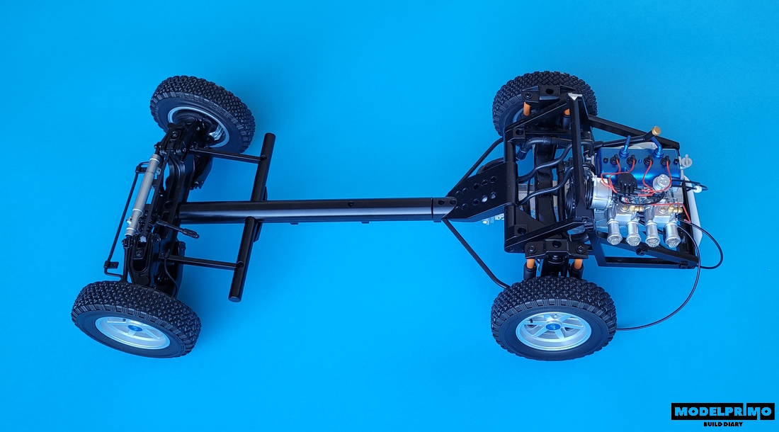 Using the attached part - the upper beam, we connect both axles, front and rear.