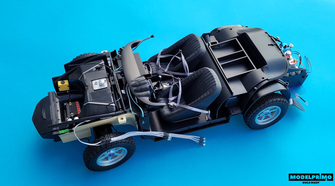 This is the moment when we connect the interior floor with the chassis, the dashboard and also lay and connect the wires.