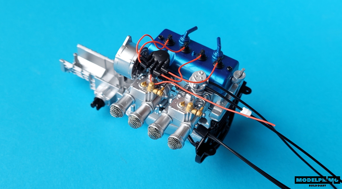 During this step, we install the alternator and ignition distributor.