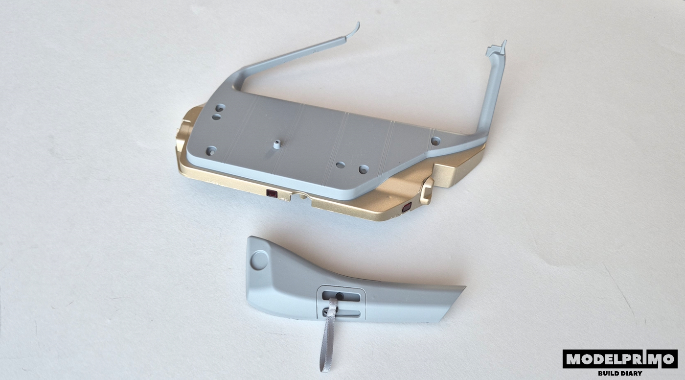 Tapicerka drzwi prawych, podłokietnik, listwa, uchwyt, pasek, blokada - przód, blokada - tył, mocowanie lampki #1, mocowanie lampki #2, mocowanie lampki #3, soczewka czerwona (x2), soczewka pomarańczowa.