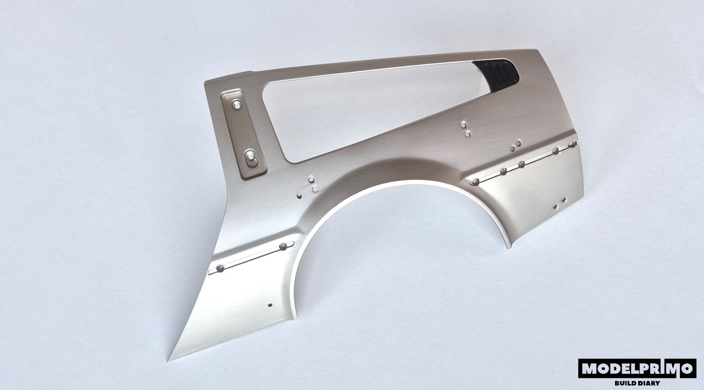 Błotnik tylny - lewy, to kolejny świetny element DeLoreana, ale na ten moment przykrecamy tylko kratkę wentylacyjną do błotnika, zestaw odkładamy na później.
