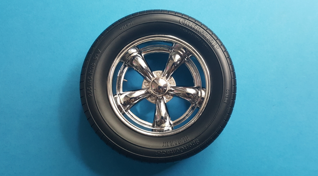 Drugi numer to pierwsze koło oraz czwororamienna kierownica. Zacznę od koła, które jak można było się spodziewać jest równie duże adekwatnie do modelu. Opona Continental 255/45 R18 (18 cali) oczywiście pełna detali i do tego piękna stalowa chromowana felga plus mały staolowy wętylek. Na oczy wygląda jeszcze lepiej niż na zdjęciu :)