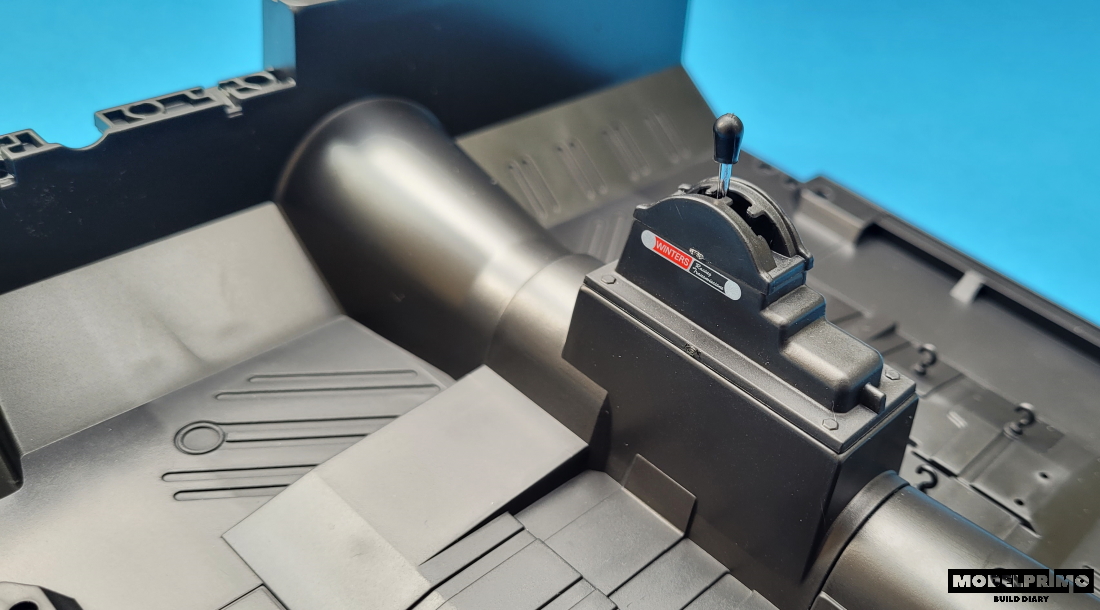 Składamy i przykręcamy manualną dźwignię zmiany biegów. W powiększeniu można odczytać emblemat na prowadnicy :)
