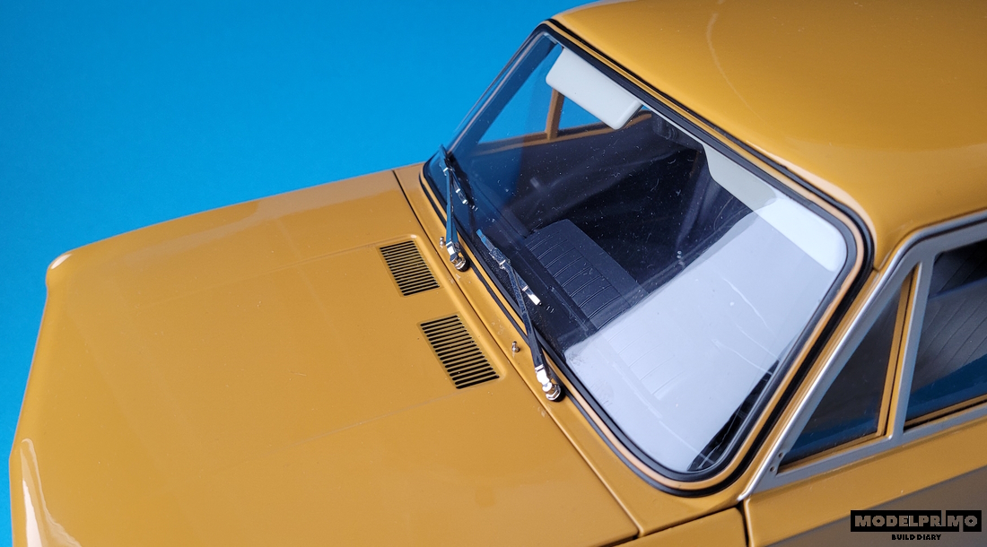 Wycieraczki, dysze spryskiwaczy i dolne listwy ozdobne. W modelu brakuje już tylko lamp tylnych i lusterka od strony kierowcy.