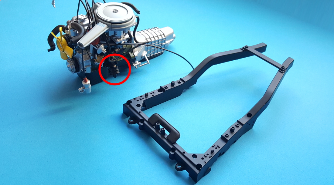 Z numerem 11 dostajemy spory kawał ramy oraz mniejsze poduszki silnika, które składają sie z dwu połówek. Gotowe poduszki przykręcamy do bloku silnika, który odkładamy na później.