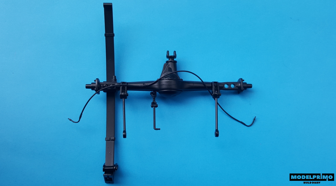 Podczas składania należy zwrócić na prawidlowe ustawienie elementów, tak aby mocowania znalazły się po właściwej stronie. Poprawnie złożony resor montujemy po lewej stronie mostu.