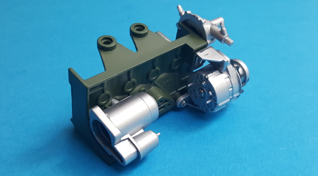 Tak jak w przypadku głowicy, nasz blok silnika jest odlewany z metalu i co ciekawe został pomalowany na kolor haki. Osobiście nie jestem aż takim znawcą dużych Fiatów, ale jak się okazuje tak właśne były malowane bloki silników, bardzo fajny szczegół :)
