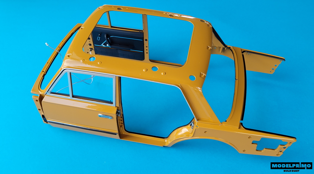 Otrzymanej szyby jeszcze nie montujemy, przykręcamy za to komplet przednich drzwi a także mocujemy przełączniki pod przednimi drzwiami. Będą one odpowiadać za włączenie/wyłączenie oświetlenia w kabinie 125p