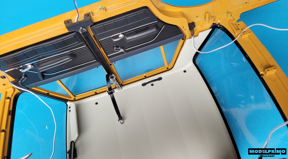 Montujemy lewy panel słupka B, w którym zostaje zamocowana dioda Led pełniąca funkcje oświetlenia kabiny.