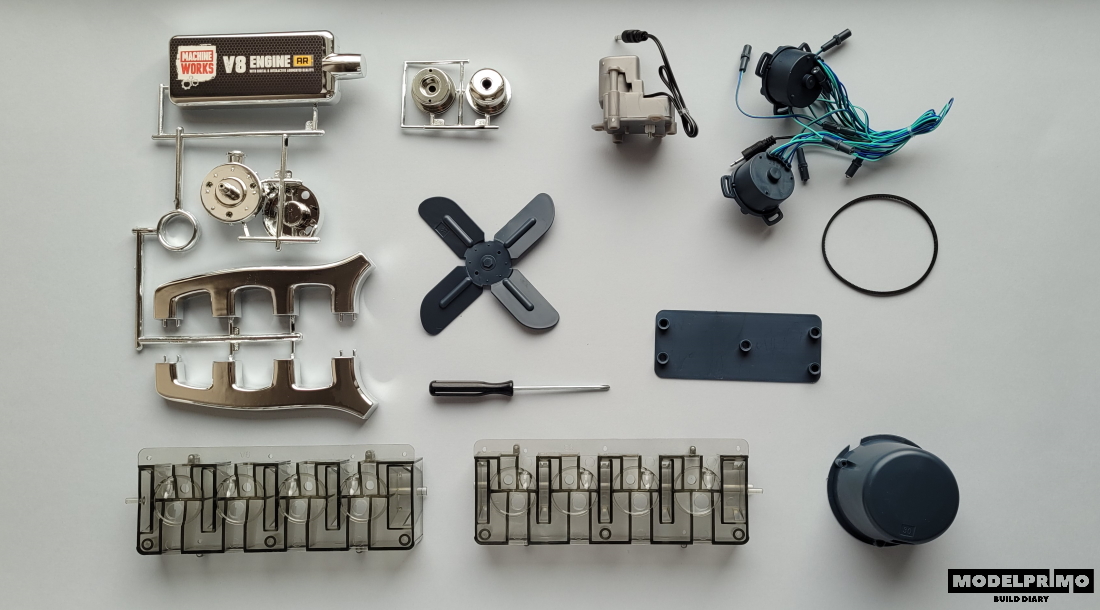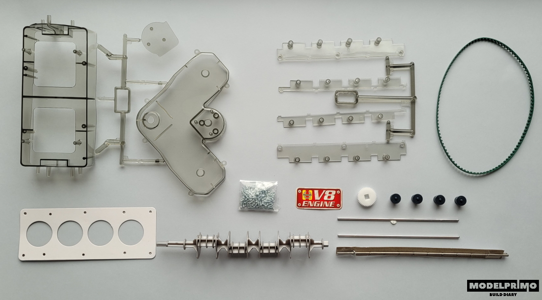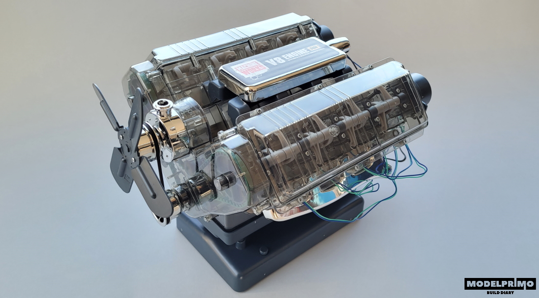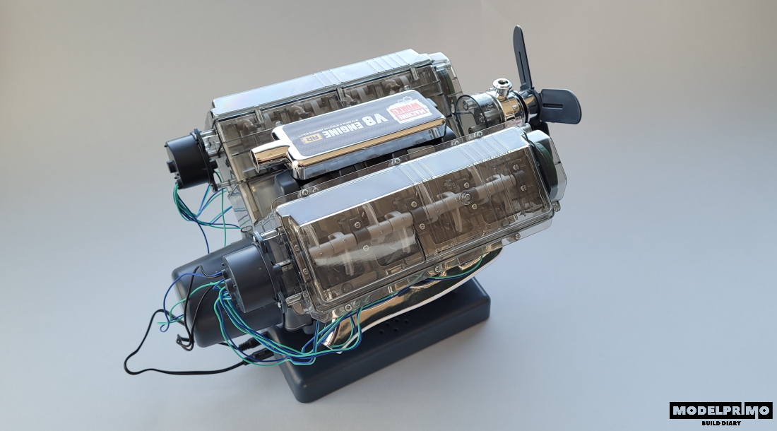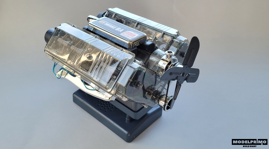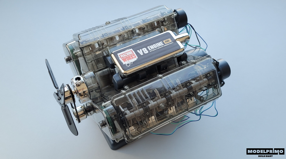 Tym razem jest to model V8, bardzo podobny w budowie do poprzednika ale z uwagi na dwa razy większą ilość tłoków, cylindrów czy popychaczy, zawiera więcej części (ponad 250), jest ciekawszy i większy.