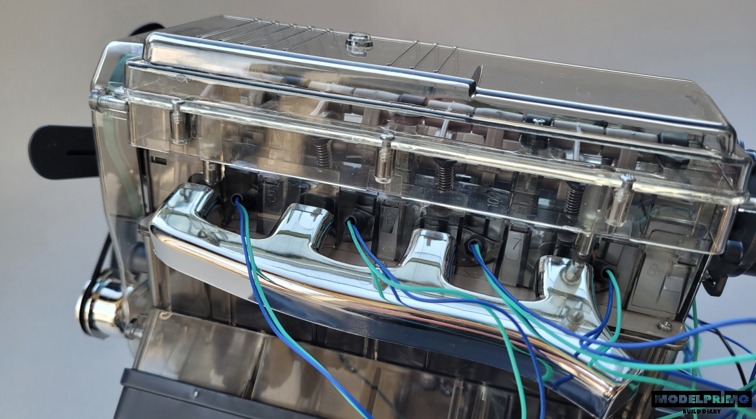 Silnik V8 robi dobre wrażenie, po uruchomieniu, podzczas pracy widać w jakiej kolejności pracują tloki i jak zapalają się LEDowe świece, szkoda tylko, że korpus nie jest stalowy :).