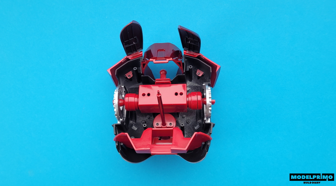 Montujemy ten spory element, jakim jest wspornik napierśnika, mocowany w dolnej częśc korpusu.