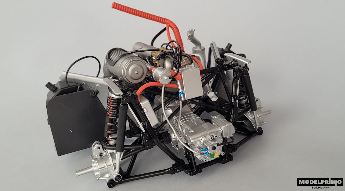 When assembling the oil cooler, or more precisely when attaching the cables, I discovered that I had made a mistake when assembling the gearbox - the gearbox closing plate was installed backwards. The yellow and green element was pointing upwards when it should be downwards. Because of this, I had to unscrew the engine from the frame to get to the bolts from the gearbox, I practically went back to number 40, but luckily I managed to fix the error without damaging anything :)