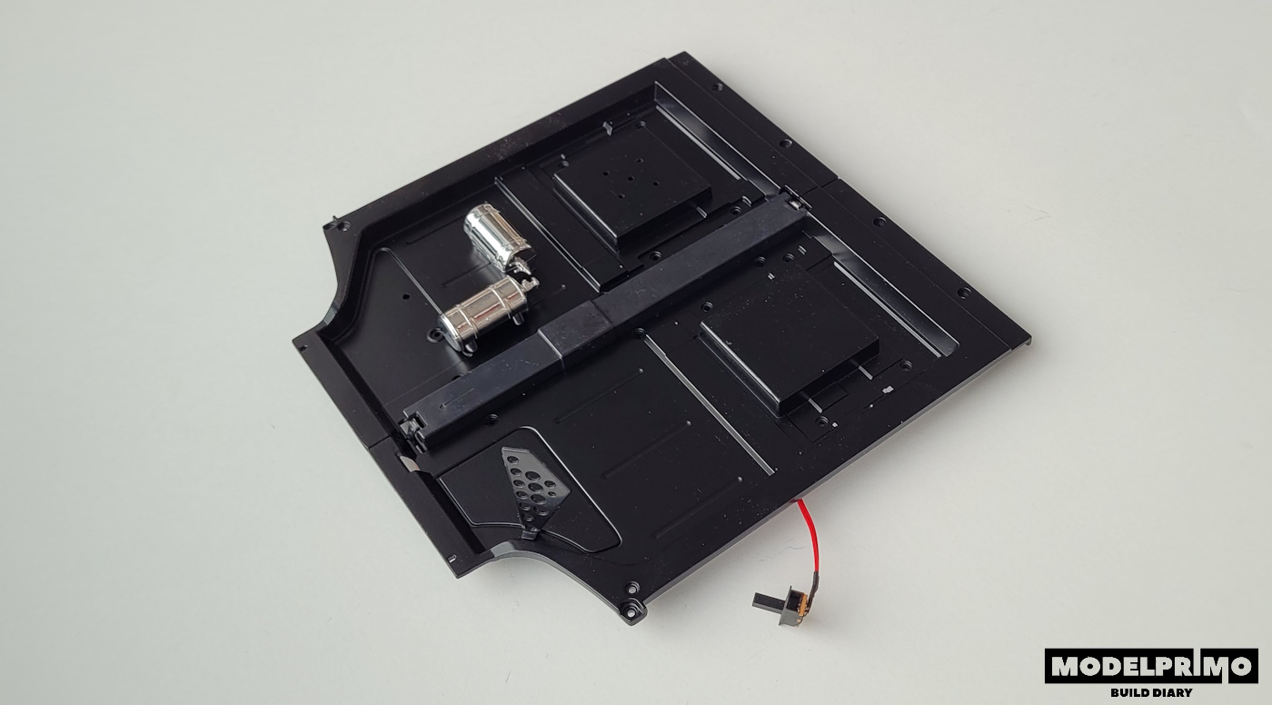 Płyta podłogowa otrzymuje kolejne elementy - dwie gaśnice i jedną z płyt, płytę z otworami.