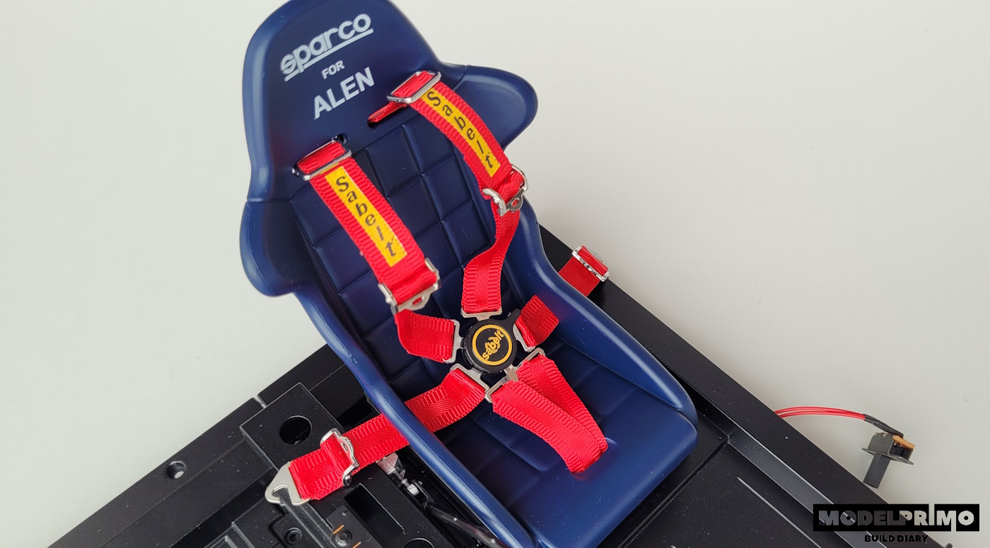 Pierwszy fotel to kubełkowe SPARCO, do którego wkładamy kompletny pas i przyktręcamy go do podłogi.