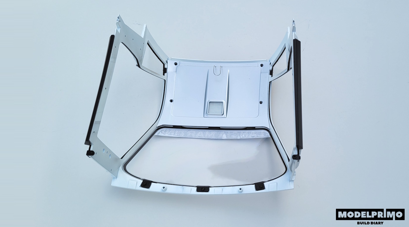 Kolejne elementy to elementy wnętrza - podsufitka wraz z kratką i uchwytem na kask.