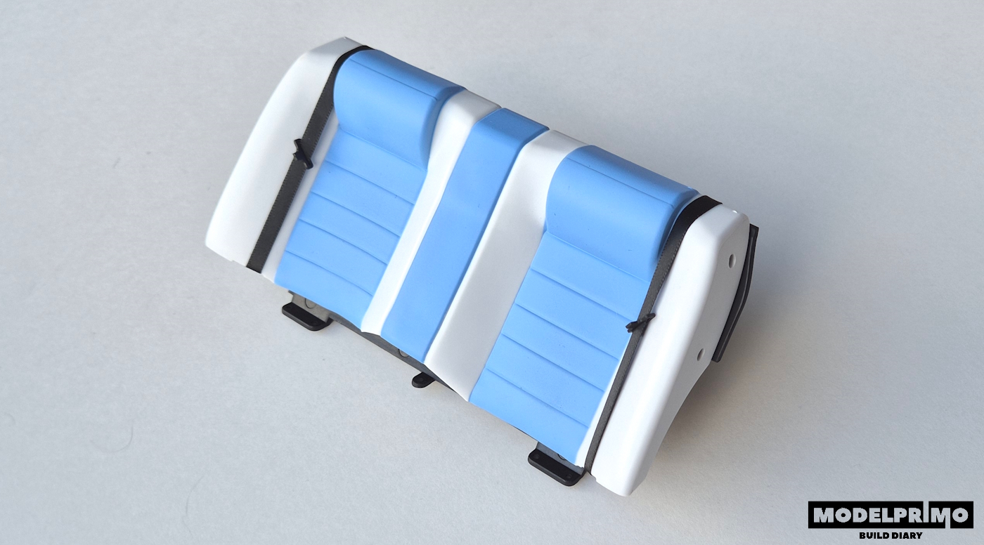 Na początek przygotowujemy oparcie tylnej kanapy, bardzo ciekawe bo z zamocowanymi na gotowo tylnymi pasami bezpieczeństwa.