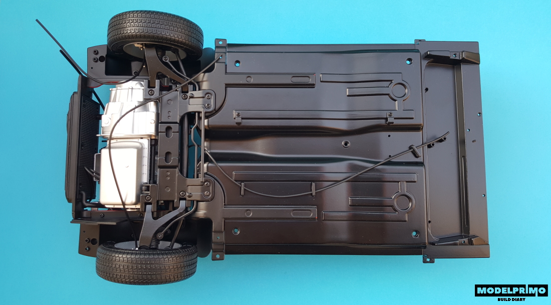 Na ten moment montujemy tylko uchwyty mocujące przewody hamulcowe pod podwoziem oraz wpuszczamy pierwszy przewód. Sugeruję użyć kleju błyskawicznego do uchwytów wciskanych - tak dla pewności, aby podczas przekładania kolejnych przewodów nic nam nie wypadło.