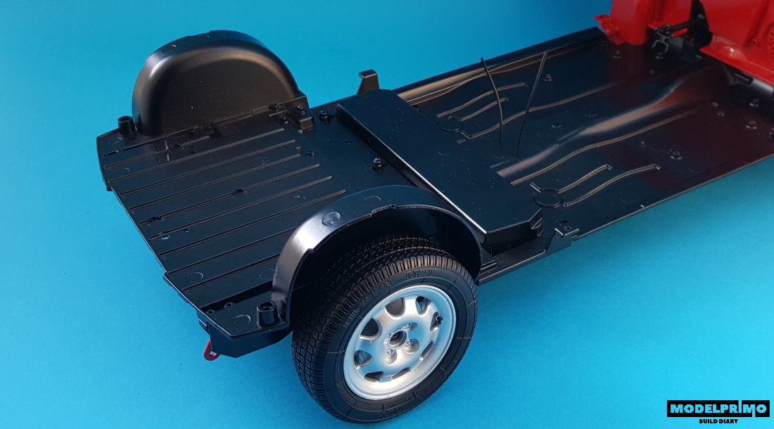 Dekielki z logiem Peugeot odłożyłem na poźniej, założe je na samym końcu budowy modelu.