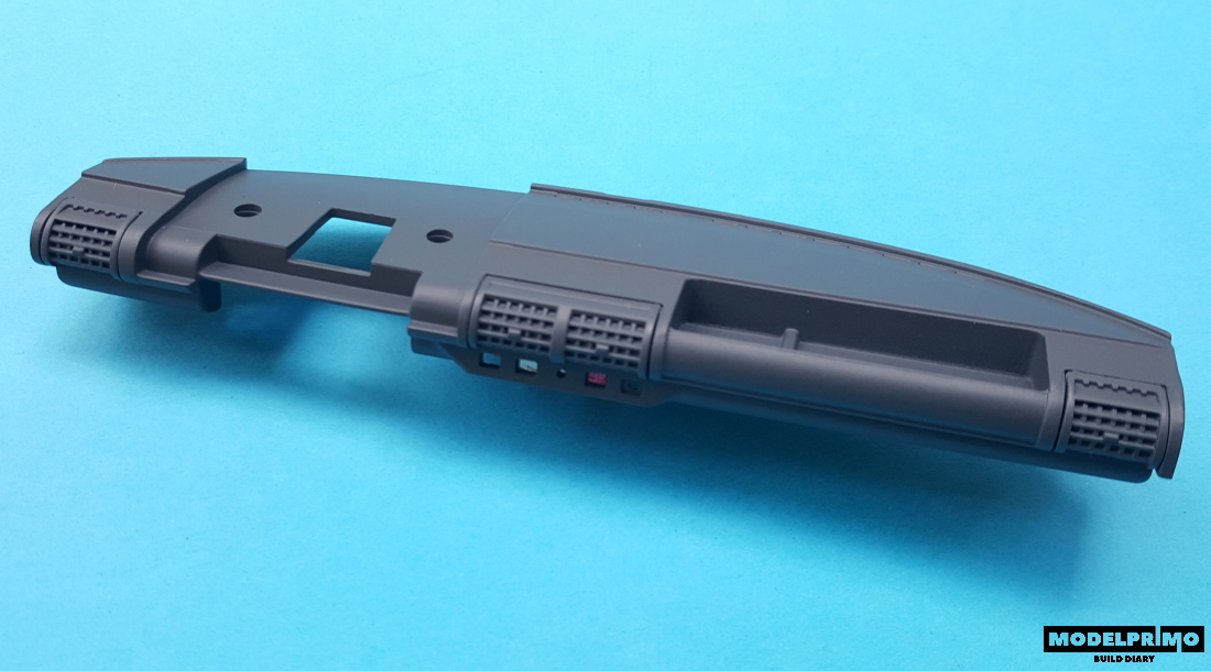 W tym etapie do głównej części deski należy przymocować kratki nawiewów, wystarczy je wcisnąć.