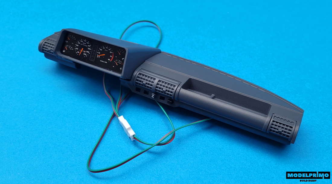 Poza tym zakładamy zapalniczkę i zaślepkę włącznika, przechodzimy do kolejnej części i składamy dalsze elementy deski rozdzielczej.