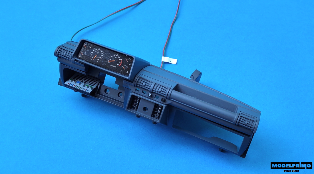 Deska rozdzielcza rośnie, dół przykrcamy do górnej części oraz zakładamy półkę z bezpiecznikami, która jest ruchoma.