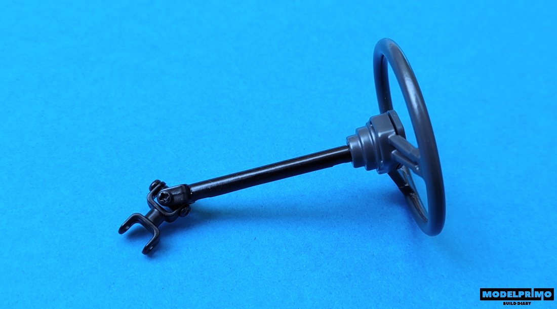 Przy okazji tego etapu przygotowujemy kolumnę kierowniczą, przykręcając do niej krzyżak znajdujący się już na nadwoziu.