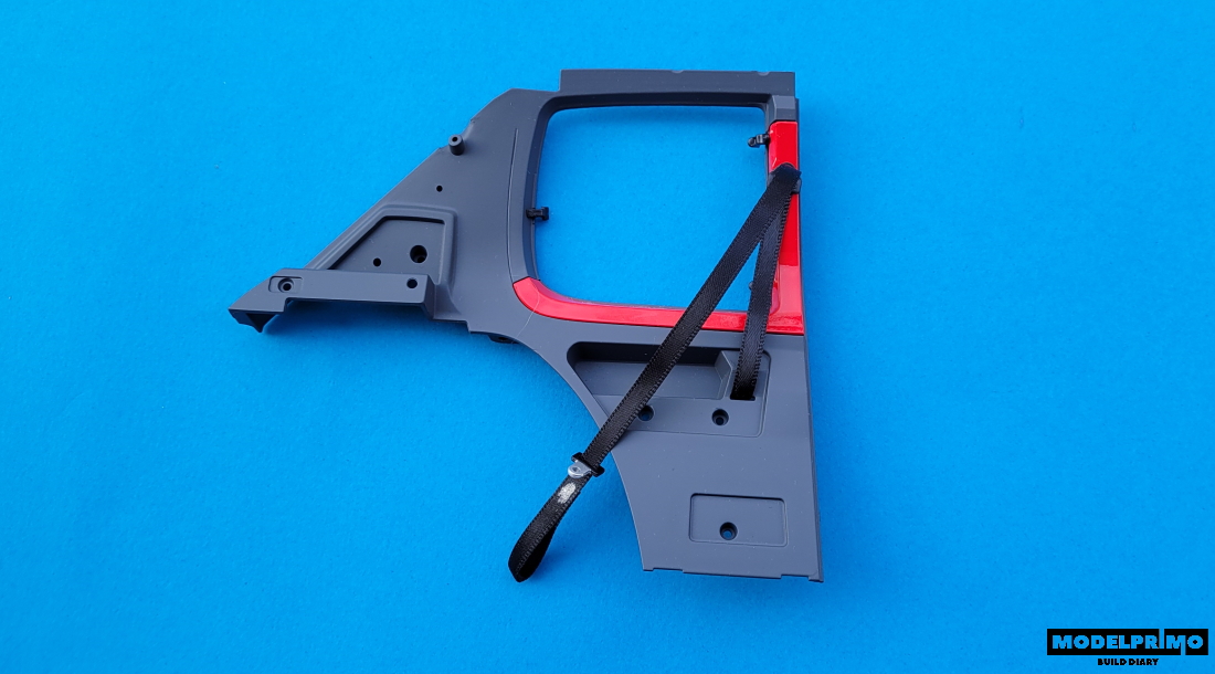 Można się było spodziewać, że pasy bezpieczeństwa zostaną tradycyjnie bardzo dobrze odwzorowane i tak też jest. Zostały wykonane z prawdziwego materiału, które dodatkowo przewlekamy klamrą. Myślałem, że juz nic mnie nie zaskoczy a tu nagle pojawiają się zawiasy bocznej szyby a także uchwyt otwierania szyby (statyczny) tu naprawdę zostało wszystko przemyślane do samego końca :)