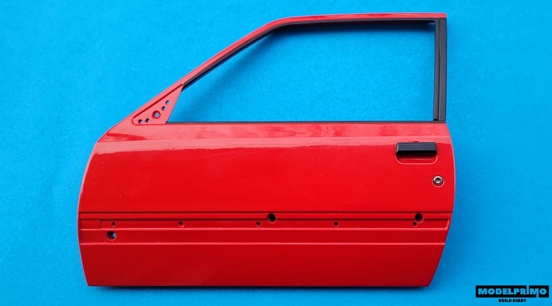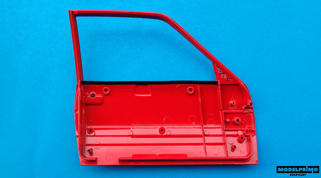 On the door we find another surprising detail - the glued seal to the window frame is nice to the touch ala velor - just like in real cars :)