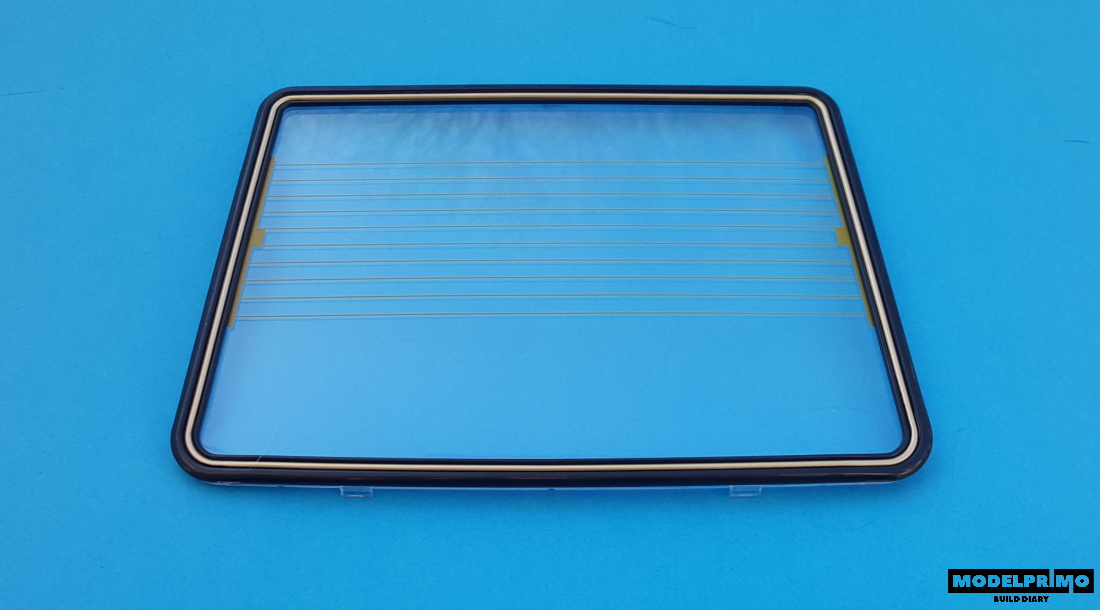 Przechodzimy do połączenia szyby z uszczelką. Szyba wygląda świetnie, a paski ogrzewanania tylnej szyby są jak prawdziwe.
