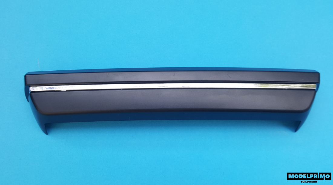 Montaż jest bardzo szybki, zakładamy chromowaną listwę na zderzak i dociskamy wypustki tak by pasek przylegał dość głęboko.