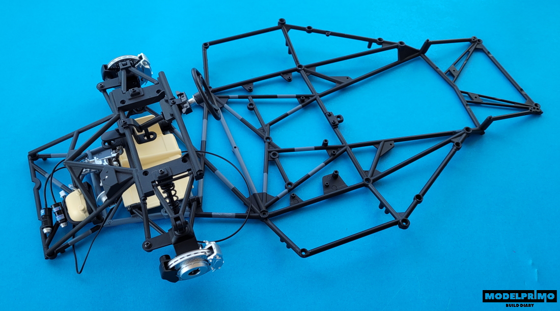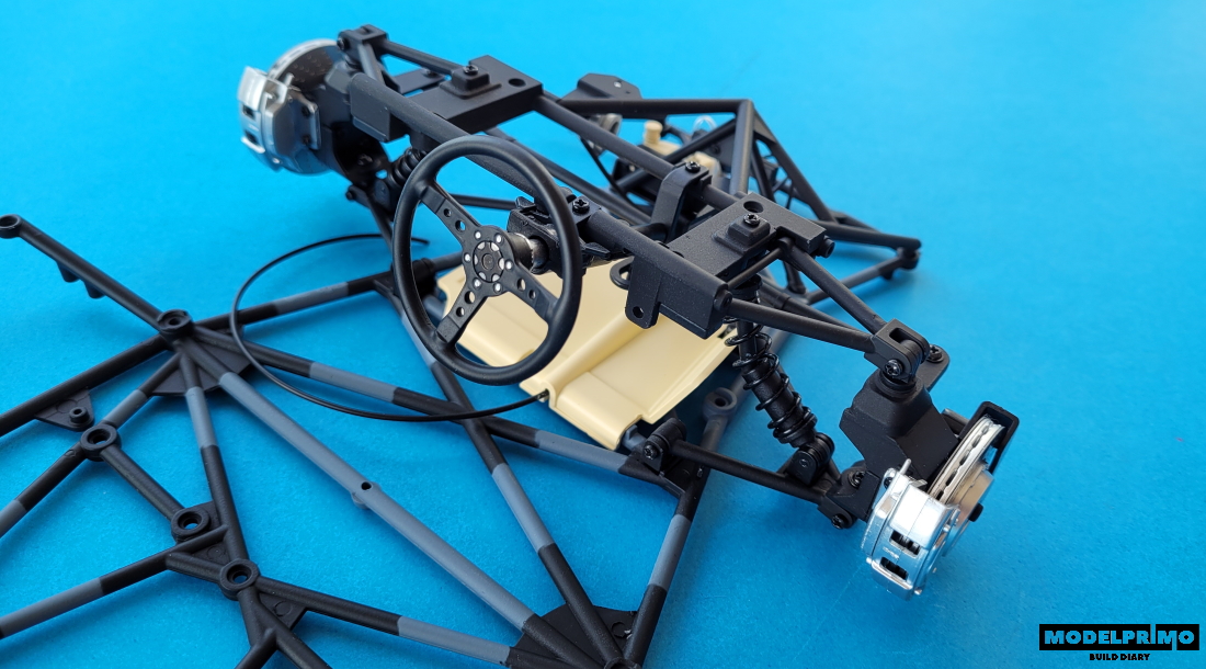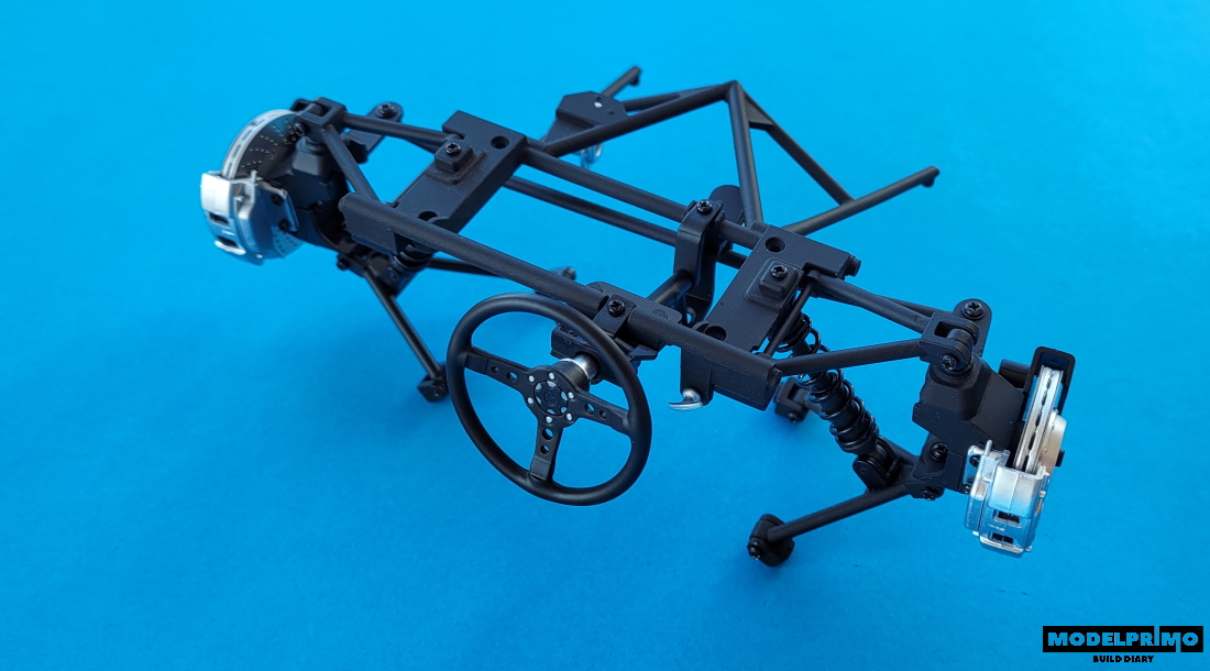 Having the whole front suspension, move on to connecting it to the chassis frame.