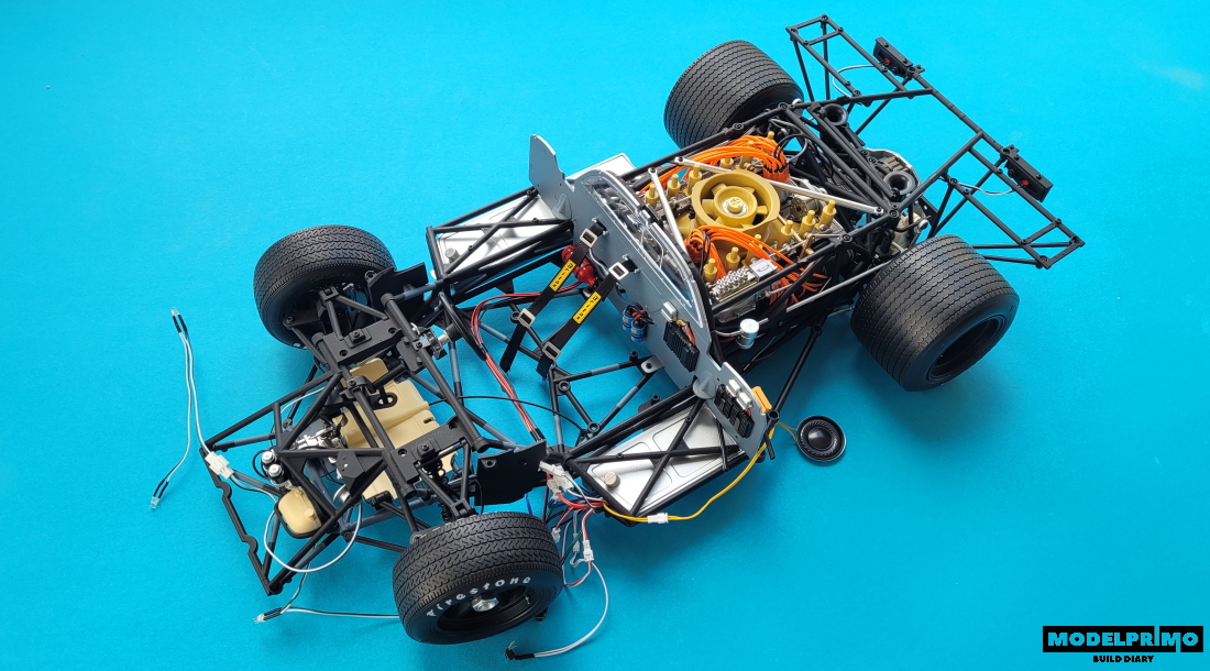 After mounting the above elements, the model starts to look very interesting, stands on all wheels and looks like an oversized go-kart :)