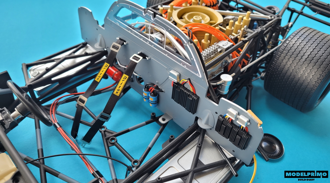 In addition, you must install electrical components that hide the ends of the wires. In addition, there will be coils or a fire extinguisher, and the whole, together with the partition, is mounted directly in the Porsche body frame.