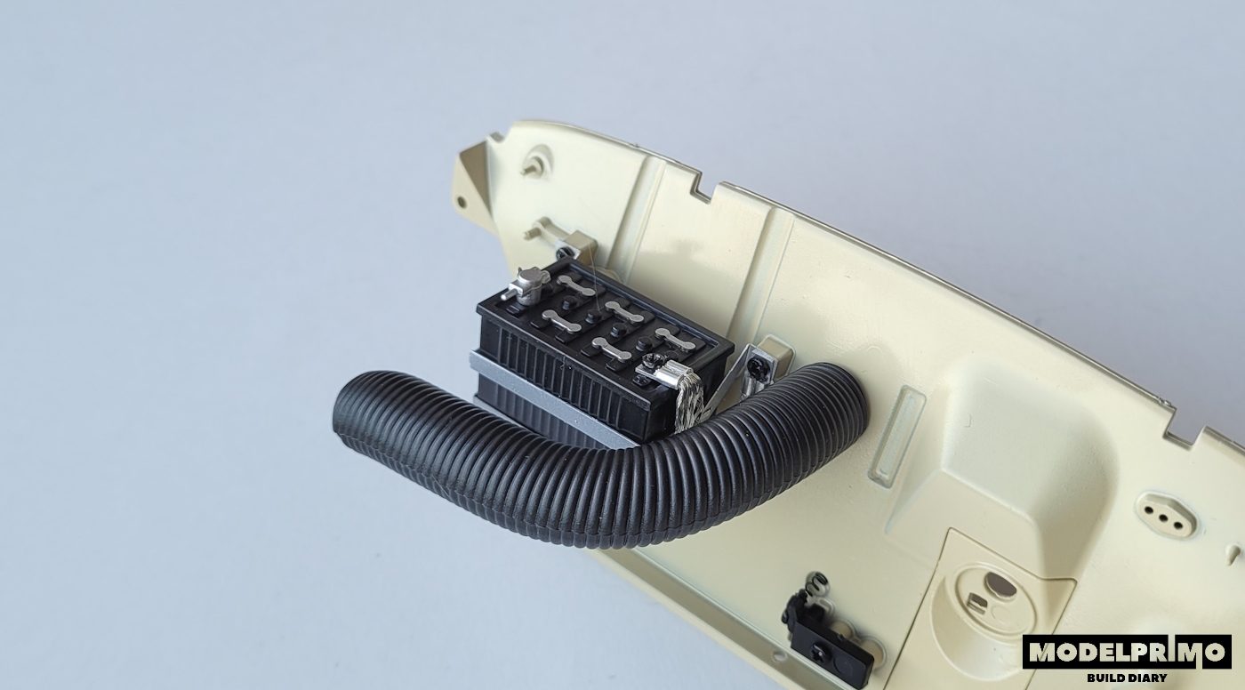 Podczas tego etapu składamy akumulator i umieszczamy go na ścianie komory silnika.