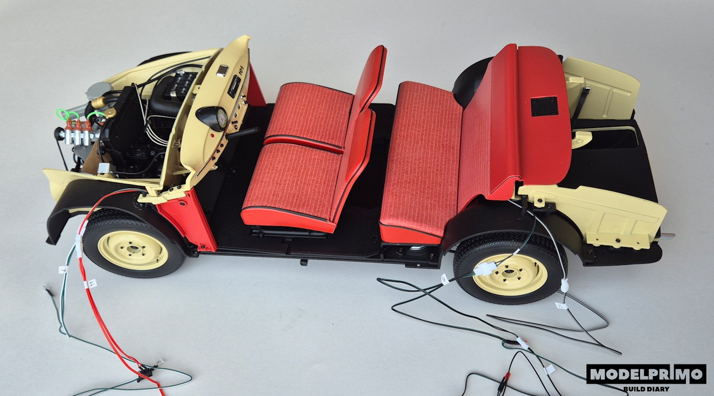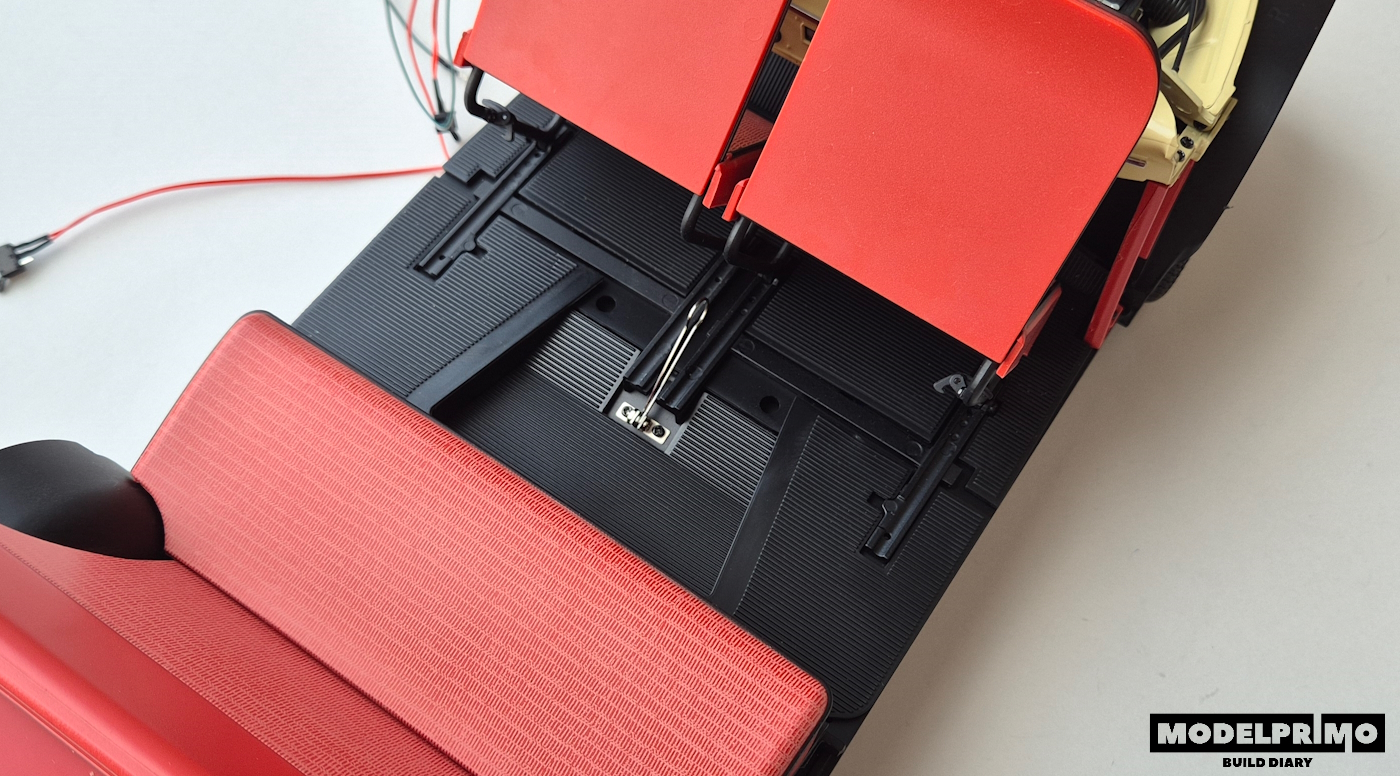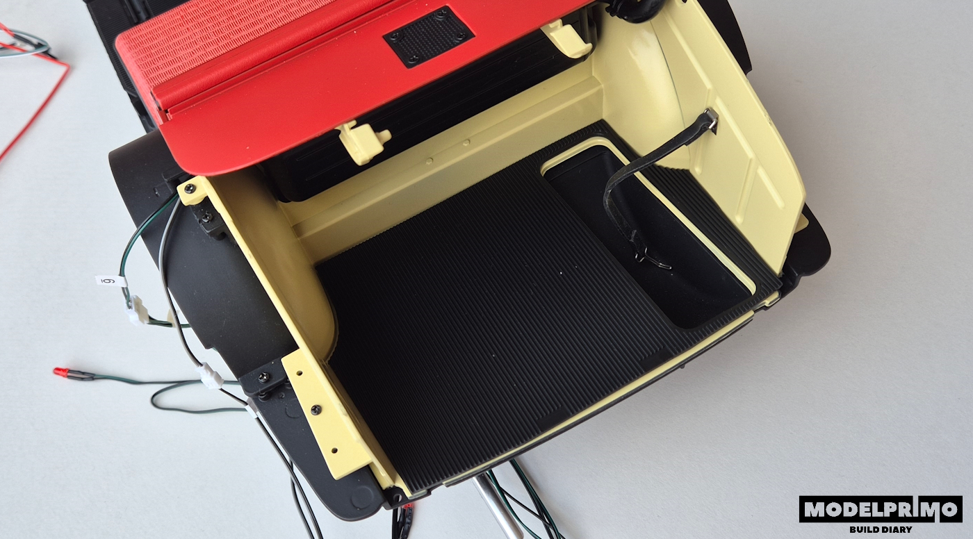 Dodatkowo podczas tego etapu układamy przewody elektryczne, a także przykręcamy podłogę kabiny do podwozia, oraz deskę rozdzielczą, więc jest to jeden z waźniejszych etapów.