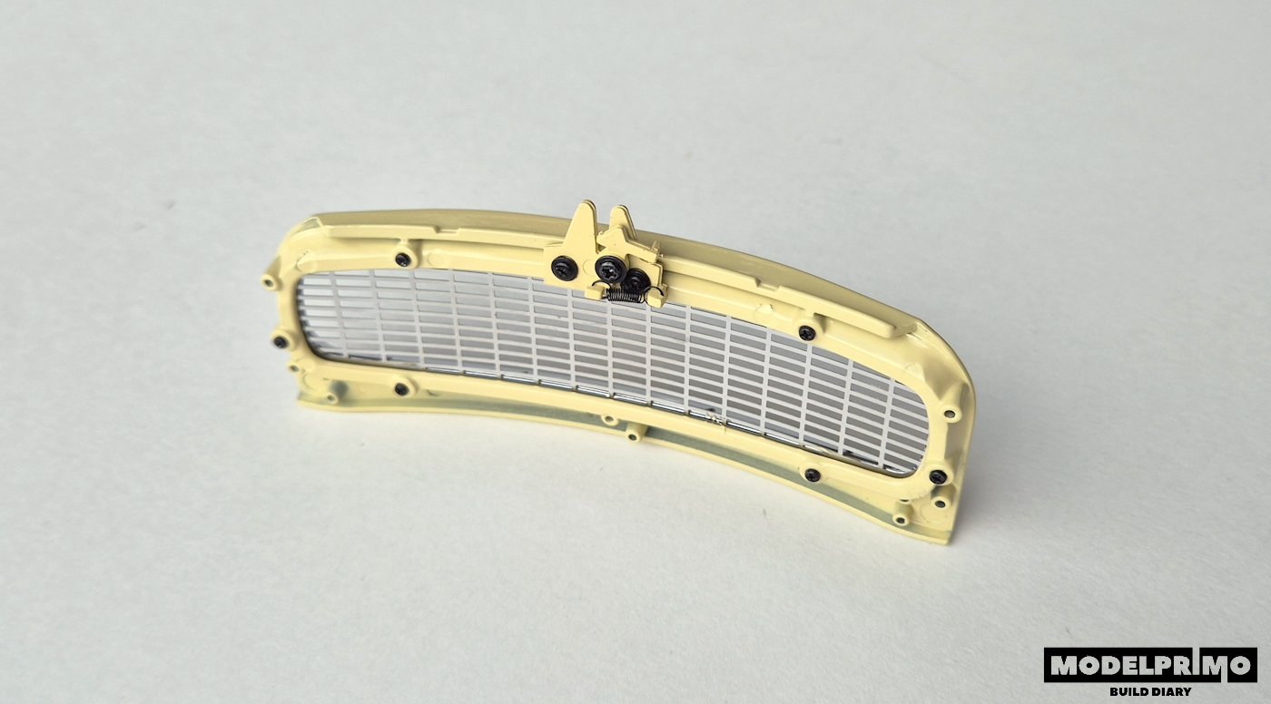 Montujemy pierwszy kierunkowskaz na lewym błotniku oraz przyczepiamy zamek do przedniego grila.