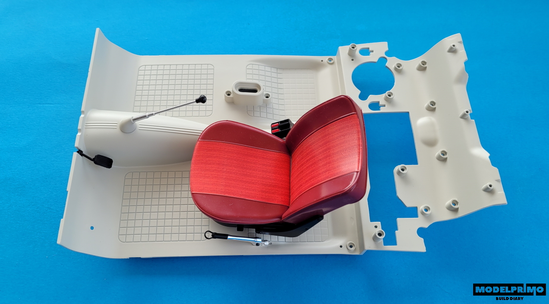 Fotel należy przykręcić z lekkim luzem tak aby można było go przesuwać. Wnętrze robi się coraz ciekawsze :)