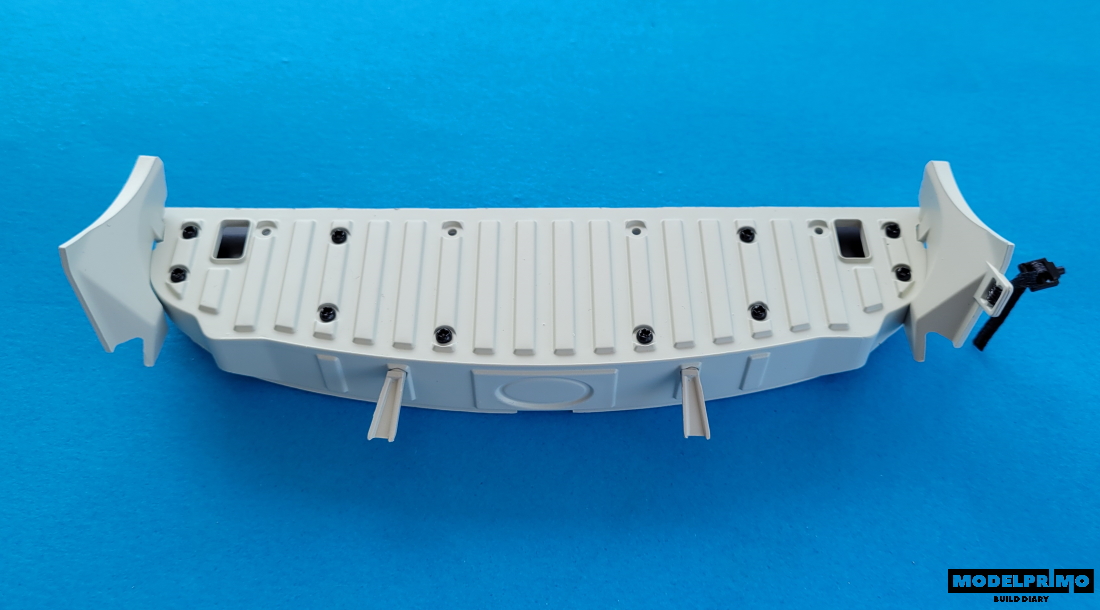 Skręcamy elementy półki wraz z pasem, który bedzie potrzebny do przymocowania lewarka w bagażniku.