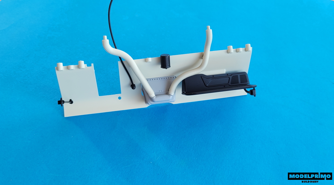 Przykręcone rury łączymy z wlotem powietrza, który również przykręcamy do panela przegrody.