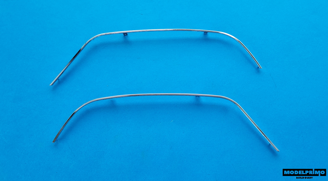 Dokładamy kolejne detale, chromowane rynienki, które również podkleiłem kropelką kleju błyskawicznego.